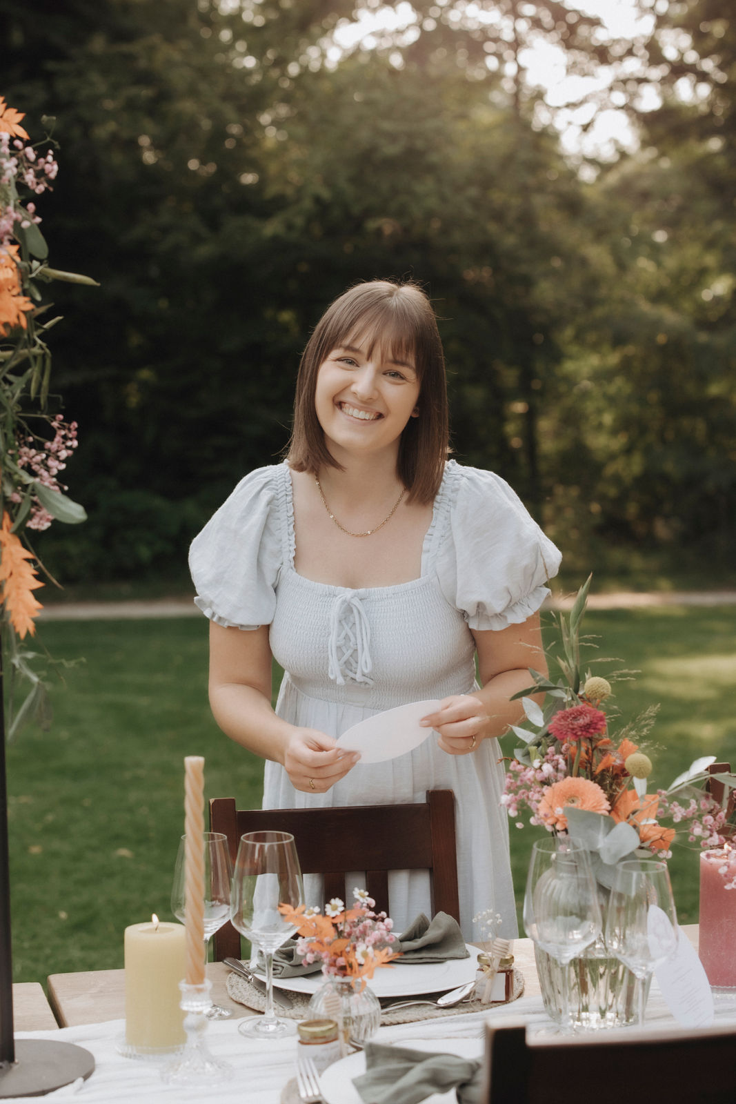 Am Tag eurer Hochzeit bin ich selbstverständlich persönlich vor Ort. Ich koordiniere alle Dienstleister, überwache die Umsetzung des Dekorationskonzeptes und stehe euch sowie euren Gästen als Ansprechpartnerin zur Verfügung. Auch im Vorfeld können sich eure Gäste jederzeit an mich wenden, wenn es Fragen zu Anreise, Übernachtung oder kleinen Überraschungen gibt. So wird jeder Punkt rechtzeitig abgestimmt – und ihr könnt sicher sein: An eurem Hochzeitstag ist alles liebevoll organisiert und betreut.